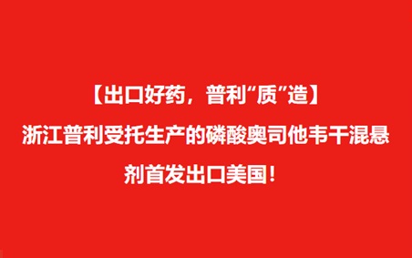 【出口好藥,普利“質(zhì)”造】浙江普利受托生產(chǎn)的磷酸奧司他韋干混懸劑首發(fā)出口美國!